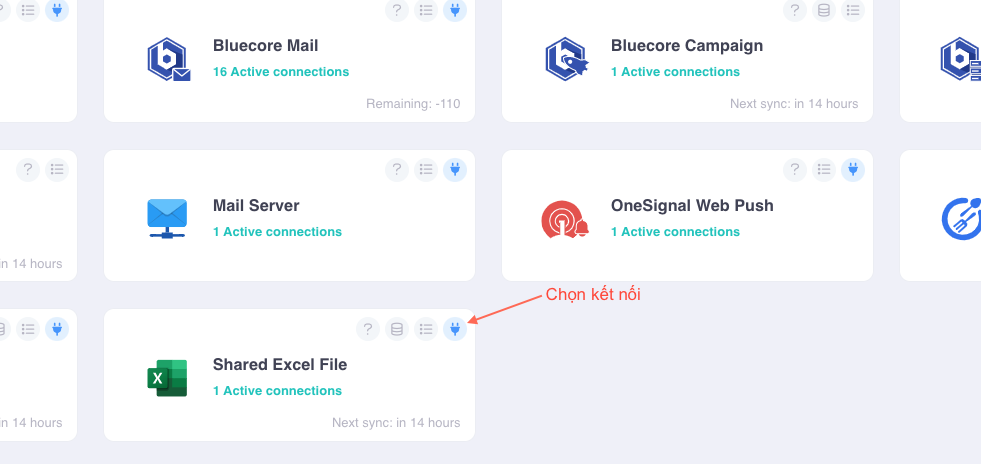 n Active connections: n là số tài khoản được kết nối với Bluecore.