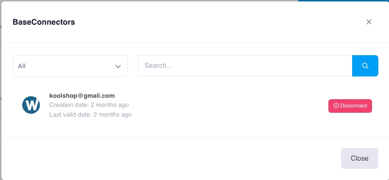 sau khi kết nối thành công, Đây là màn hình quản lý các kết nối.