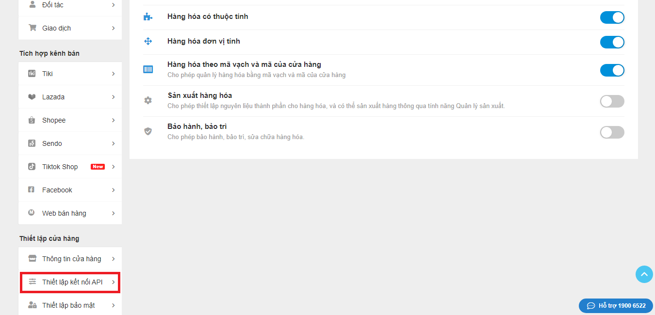 Bước 3: Ở cột bên trái, kéo chọn “Thiết lập kết nối API”