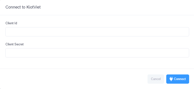 Xuất hiện bảng Connect to KiotViet. Bắt đầu kết nối bằng cách sau đây