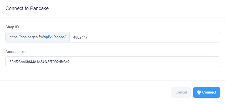 Bước 9: Chọn Connect để hoàn thành việc kết nối với cửa hàng Pancake của bạn