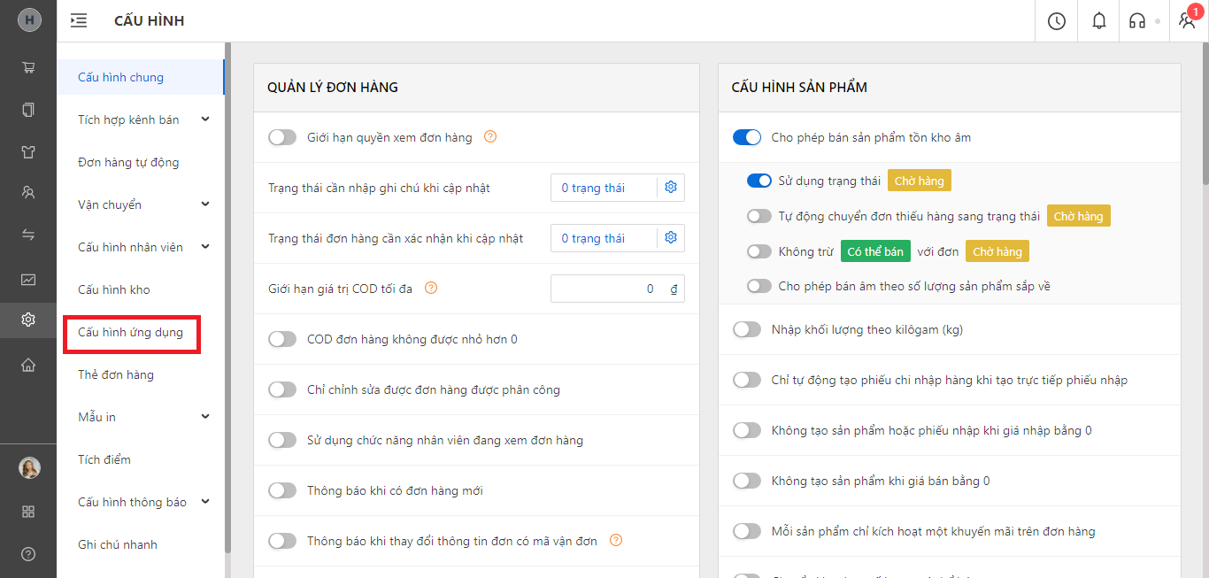 Bước 5: Chọn “Cấu hình ứng dụng”