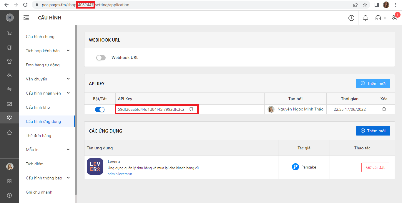 Bước 8: Trở lại website admin, dán “số ID” vào Shop ID và dán “dãy số API KEY” vào Access Token