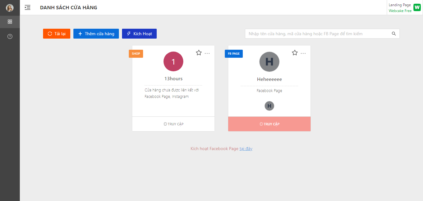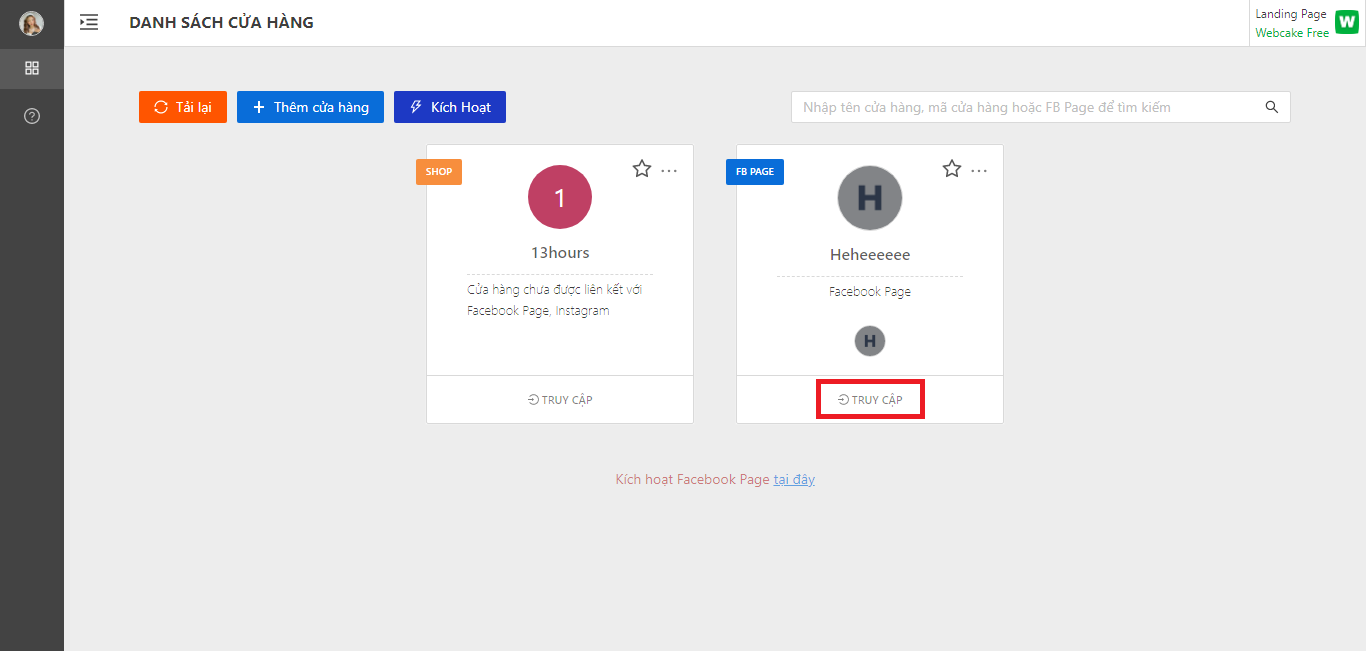 Bước 3: Tại website của Pancake, truy cập vào cửa hàng sẵn có của bạn