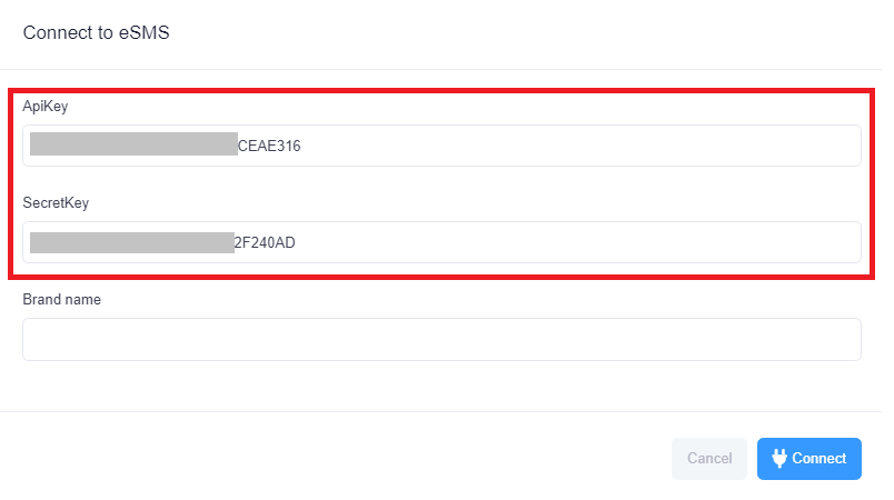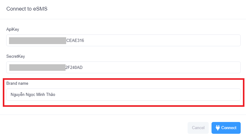 Bước 1: Chọn biểu tương “Add connection” ở bên phải logo ESMS để kết nối với tài khoản ESMS của bạn