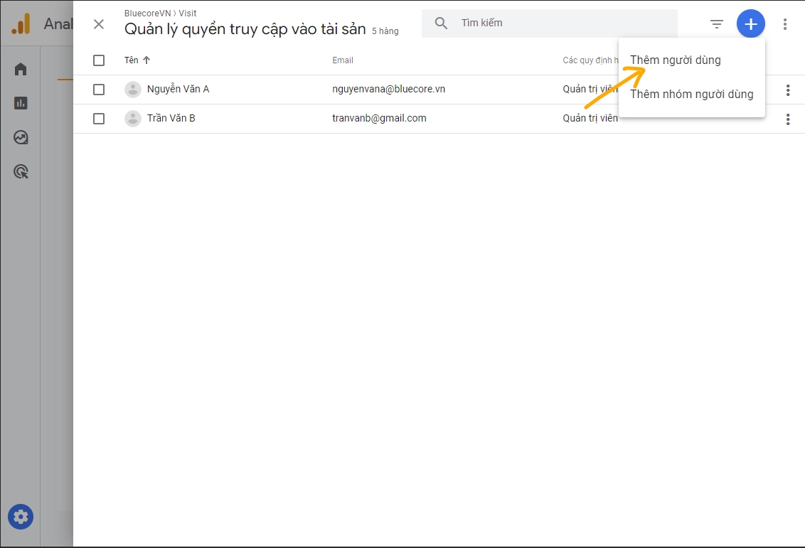 Thêm tài khoản của Bluecore với quyền “Xem”: