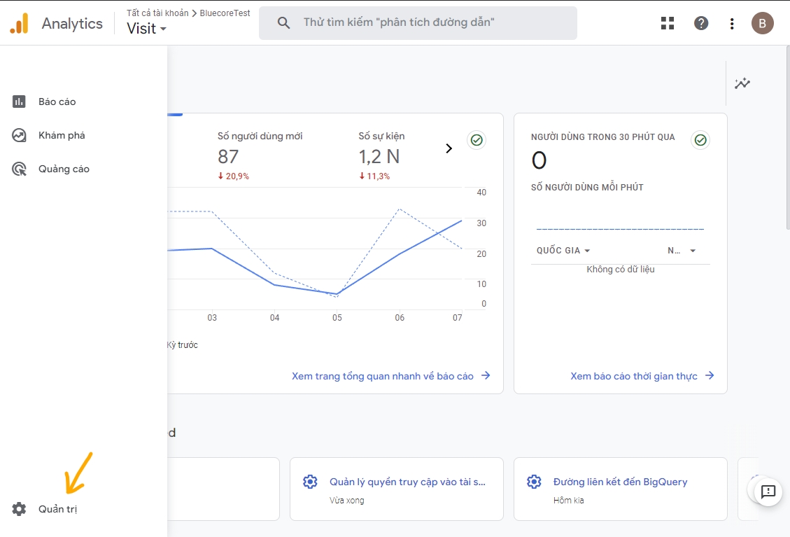 Cho phép Bluecore đọc dữ liệu báo cáo GA4