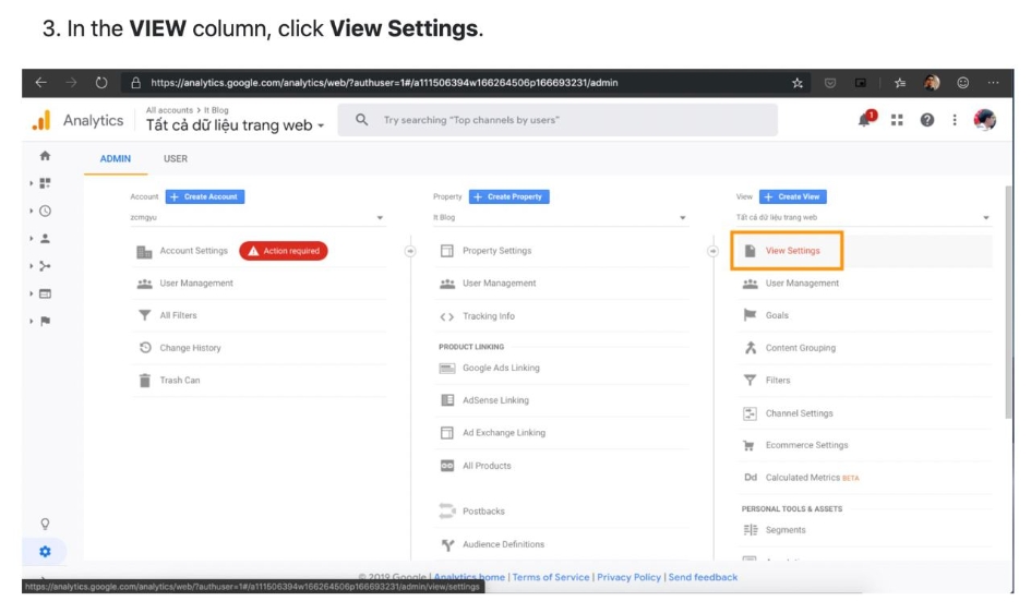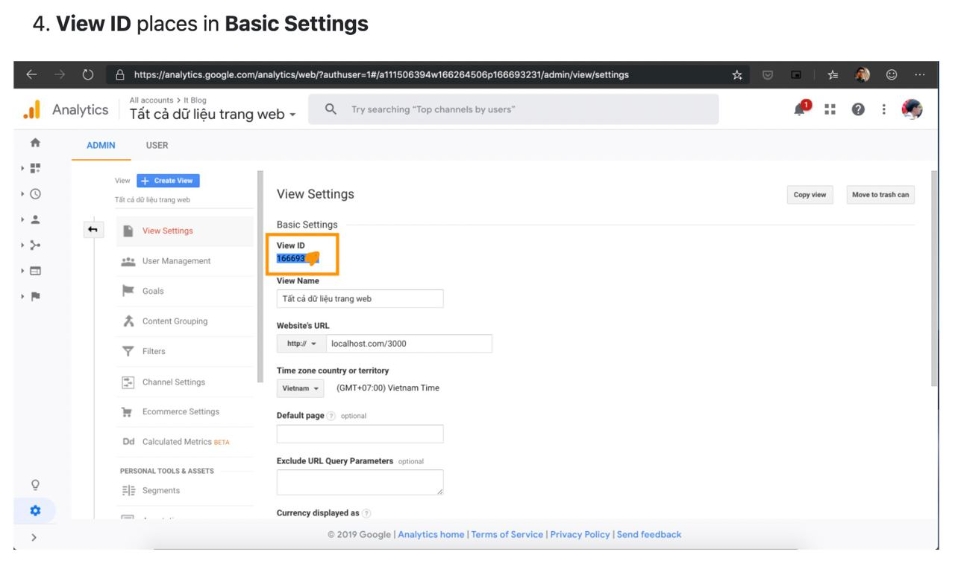 Hướng dẫn Lấy thông tin viewId cần lấy dữ liệu: