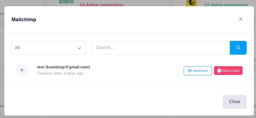 Có nút send test, click vào nút sẽ hiển thị bảng cho gửi thử.
