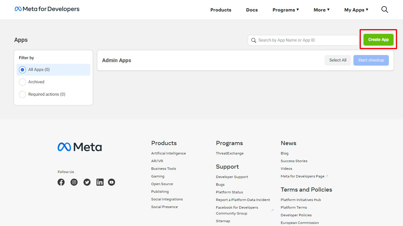 ### **Bước 1**: Truy cập [Quản lý ứng dụng](https://developers.facebook.com/apps) trên Facebook for Developers.