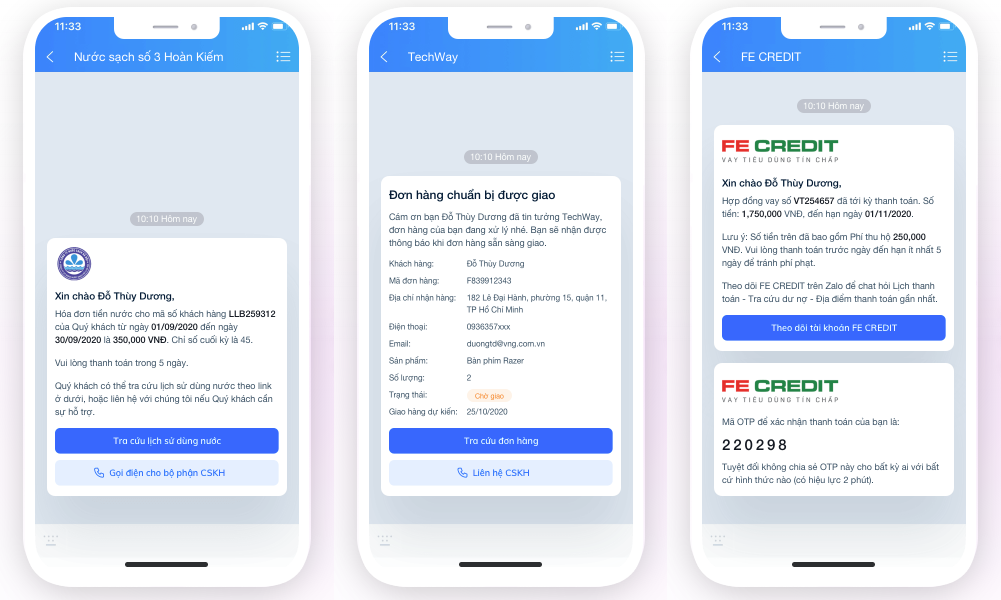 Zalo Notification Service (ZNS) là dịch vụ gửi thông báo chăm sóc khách hàng qua API tới các số điện thoại đang sử dụng Zalo